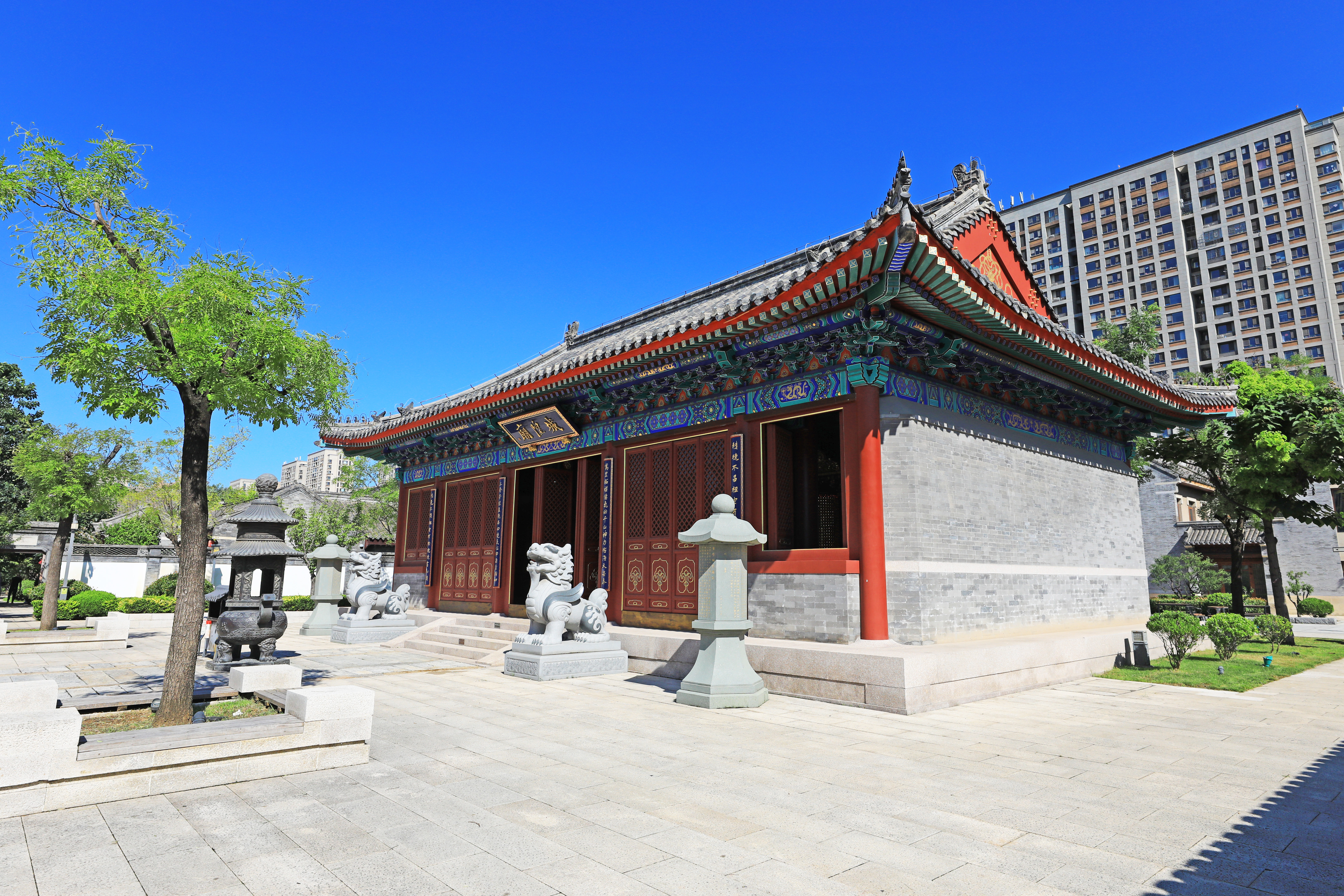 查看文庙亦称“圣庙”、“先师庙”,是奉祀我国古代伟大的思想家、教育家、儒家思想的创始人、大成至圣先师孔子的庙堂建筑。即墨文庙始建于元代至元七年(1270年),由邑人吕瓒暨弟珪以己田易邻壤,捐钱五百缗,创建殿庑斋舍。元至正十二年,县尹董守中增建。中为大成殿,东西列两庑,东更衣,次西先贤祠,祭品、礼器二库,前为戟门、棂星门。明洪武九年(1376年),县丞杨泰中重修。正统十年(1445年),知县周礼、冯时举相继重修。明成化二十三年(1487年),知县张闻又拓其基,重修戟门外东西神府,宰牲所厢房20间。弘治元年(1488年),知县张闻捐修。弘治五年(1492年),邑侍郎蓝章买庙前地,辟为神路。正德十五年(1520年),知县陈景重辟神路。嘉靖初年(1522年),易文昌祠为名宦祠,九贤祠为乡贤祠。嘉靖十五年(1536年),邑御史蓝田修棂星门,易以石坊。嘉靖二十五年,知县许伸修建石坊于门南,题曰:“斯文正路”。四十三年,知县汤明善开神路,杜从周首倡兑地,建石坊题曰“万里云衢”。清康熙五十三年(1714年),郭琇建二石坊于门外,东曰“德配天地”、西曰“道冠古今”。同治十年(1871年),知县林溥重修大成殿、东西列、东西庑、庭阶、甬道、神龛、供座、戟门、棂星门。即墨文庙自元代至清末600余年间,先后共23次大修和扩建,形成完整的儒学庙堂建筑。1898年因文庙圣象被德军损毁而引发了著名的第二次“公车上书”。1929年3月26日,军阀张宗昌部盘踞即墨城。6月22日,国民党孙殿英部以“北伐”名义对其进行讨伐,在即墨城兼并其下属的顾震残部后,为掩人耳目,火烧了大成殿等建筑。 2015年1月18日,即墨文庙开始复建,2016年8月竣工。总占地面积2880平米,总建筑面积1058平米。复建后的文庙为三进院落,中轴线为棂星门、泮池、大成门、大成殿、崇圣祠等主体建筑。第一进院落是文庙的前导性空间,从棂星门经泮池至大成门。棂星门沿用古制,为三间四柱三楼式牌坊门,为青白石材质,门两侧各一影壁,采用传统砖雕图案镶嵌。大成门采用单檐歇山顶,三开间,东西两侧各置一侧门。东西厢房为名宦祠和乡贤祠,均为三开间,硬山顶,铺青筒瓦。东侧的名宦祠供奉即墨三大夫、田单、童恢、汤明善等14位名宦。西侧的乡贤祠供奉田横、王吉、侯庸、蓝章、蓝田、杨良臣、黄嘉善、黄宗昌、郭琇、李毓昌等40位乡贤。泮池,又称泮水,是地方官学标志。泮池为半圆形,壁为石砌。外圆内直,上设石拱桥,即泮桥,意味不盈不亏,象征中庸之道。池边及桥上均施望柱、栏板。大成门由正门与侧门构成,为歇山建筑,高8.15米,彩画为墨线大点金龙锦枋心旋子彩画。门东西两侧分别设置晨钟暮鼓,供礼仪活动时使用。大成门前东侧所立古城建设时出土的清康熙年间《至圣先师孔子赞》碑,弥足珍贵。第二进院落是文庙的主题部分,大成殿是祭祀孔子的正殿,位于中轴线上,面阔五间,共19.5米,进深三间,共12.7米,平面近方形,重檐歇山顶。屋顶覆黄色琉璃瓦,前有月台,与大成殿形成“凸”形布局,周围施以石栏板,彩画为金线大点金龙锦枋心旋子彩画,殿内供奉孔子像,两侧从祀四配十二哲像,均为脱胎漆器塑像。东、西庑位于大成殿前两侧,各5间,长16.85米,宽5.4米,为硬山建筑,绿色琉璃瓦屋顶,彩画为墨线小点金一字枋心旋子彩画。供奉孔门七十二贤哲。第三进院落是崇圣祠,是文庙建筑群北端的主体建筑,为带前廊、硬山式,屋面覆盖板瓦。内部展陈着由36块木雕组成的木质版《孔子圣迹图》。该作品再现了孔子一生行迹与相关的历史事件。由中国工艺美术大师、非物质文化遗产“东阳木雕代表性传承人”黄小明雕刻完成。